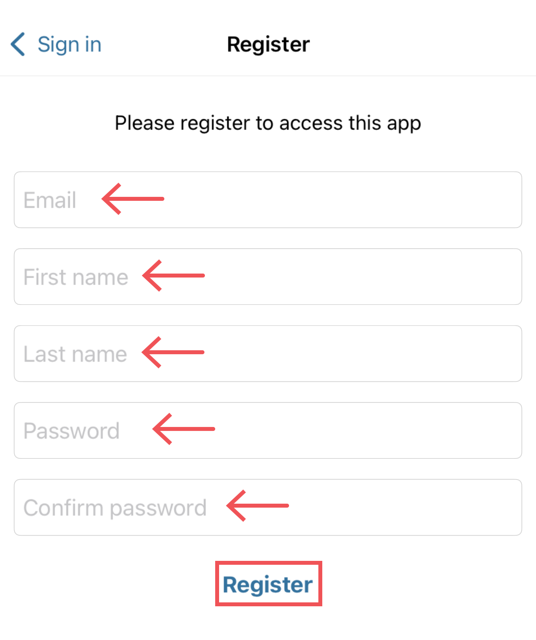 - Fill in the registration form* and tap the “Register” button under the form